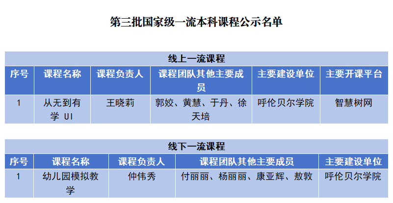 近日,教育部高等教育司发布《关于第三批国家级一流本科课程认定结果的公示》,我校《从无到有学UI》和《幼儿园模拟教学》两门课程成功入选,实现了我校在国家级一流本科课程认定上“零的突破”。
