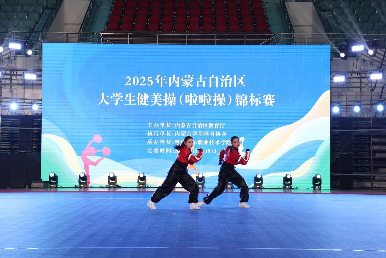 10月18日至20日,由内蒙古自治区教育厅主办、内蒙古呼伦贝尔职业技术学院承办、内蒙古自治区体育协会执行,2025年内蒙古自治区健美操(啦啦操)锦标赛在呼伦贝尔职业技术学院举行。我校体育学院(冰雪运动学院)院长李晓峰亲自带队,携教练员王瑞及15名学子代表学校参赛,经过激烈角逐,我校勇夺本科超级组双人街舞项目第一名、本科超级组双人街舞项目第二名,包揽了双人街舞项目的冠亚军;在本科超级组自由舞蹈项目中,队员们凭借整齐划一的动作和亮眼的创意编排,荣获第三名的好成绩,摘得季军,为学校赢得了荣誉。