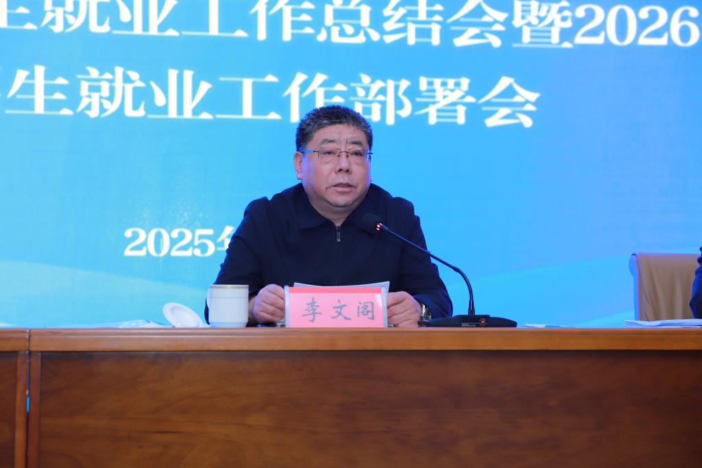 为全面梳理总结招生就业工作经验,科学规划新阶段路径,12月5日下午,我校在崇文楼A201会议室召开2025年招生就业工作总结暨2026年招生就业工作部署会。校党委书记李文阁,校党委副书记、校长张玉柱,校党委委员、副校长李跃武出席会议。各二级学院领导、团学办主任、毕业班班主任、辅导员及相关职能部门领导参加了会议。会议由李跃武主持。