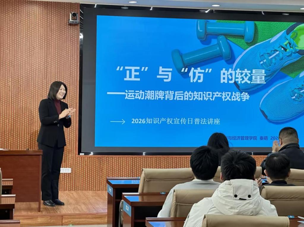 4月23日下午,结合今年宣传周活动主题,自治区律师协会知识产权专业委员会委员、呼伦贝尔市人民政府法律专家库专家、我校法润边疆宣讲团成员秦萌副教授以《“正”与“仿”的较量——运动潮牌背后的知识产权战争》为题,开展普法宣讲。市区两级市场监督管理局、知识产权保护中心工作人员和我校师生共同聆听。
