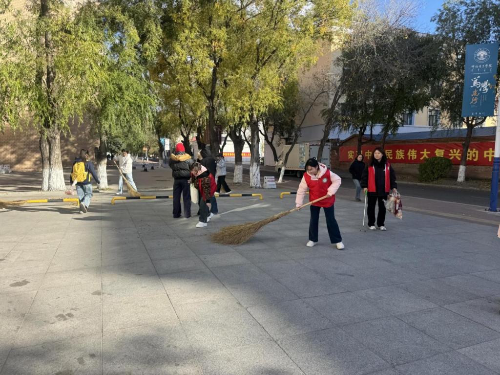 活动启动后,各二级学院迅速掀起卫生扫除热潮。老师们率先垂范,深入班级、宿舍与学生一同劳动,有的手持扫帚清扫地面落叶,有的弯腰捡拾绿化带中的垃圾,有的协助整理宿舍内务,用实际行动为学生树立榜样;学生们更是热情高涨,以班级、宿舍为单位,分工协作、相互配合,从教学楼的课桌抽屉、黑板缝隙,到宿舍楼的走廊拐角、楼梯扶手,再到校园角落的杂草枯枝、卫生死角,大家不放过任何一个细节。一时间,校园内随处可见师生们忙碌的身影,扫地声、擦拭声、搬运杂物的声音交织在一起,形成了一幅“全员参与、共建美丽校园”的生动画面。