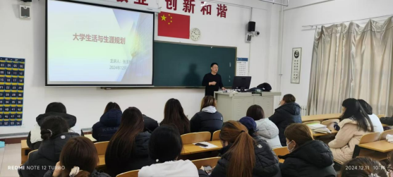 为了加强和改进大学生思想政治工作,教育引导学生健康成长成才,促进良好校风学风建设,密切领导干部与学生之间的关系,加强领导干部对学生的指导,12月11日上午,学校乡村振兴研究中心主任张玉桩到蒙古学学院2023级中国少数民族语言文学二班参加“大学生活与生涯规划”主题班会。