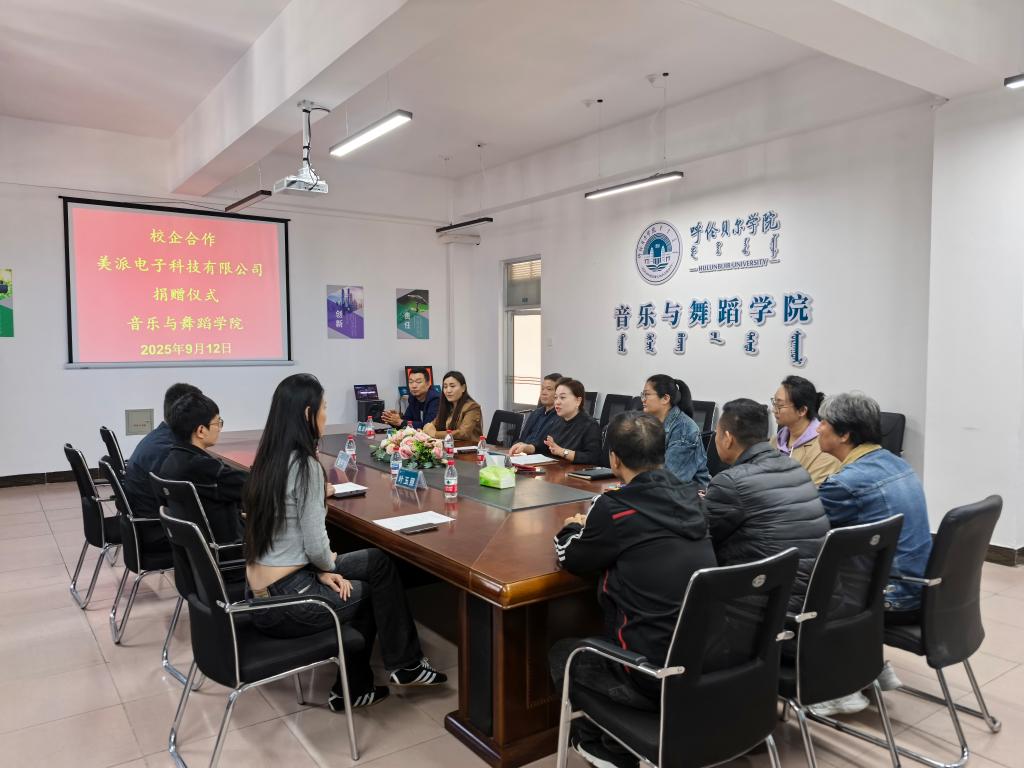 9月12日,龙健集团美派电子科技有限公司营销总监张宇飞、龙健集团美派电子科技有限公司副总经理叶玉照一行三人来我校,与音乐与舞蹈学院党委书记包德、院长灵芝、党委副书记赵志刚、副院长刘丽丽及器乐系教师在艺术楼613会议室就校企合作意向内容进行洽谈,并最终形成合作意向,成功签署校企合作协议。