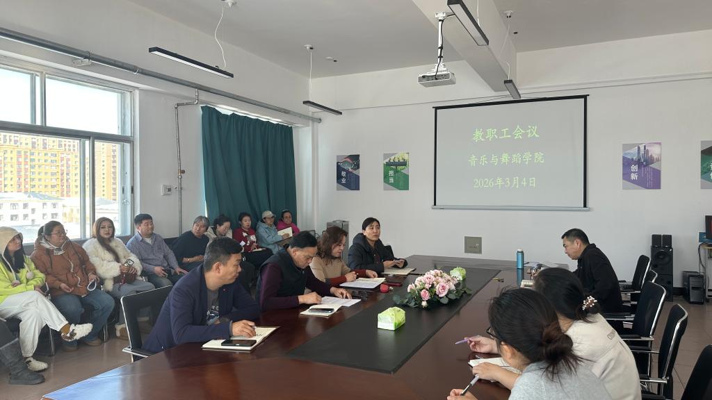 院长灵芝传达了学校教学工作会议精神,总结上学期教学科研、学科建设等成果,部署本学期重点工作:一是抓实教学常规与课堂质量,抓学风建设;二是推进学科专业建设,持续培育舞蹈学科的建设工作;三是凝聚科研团队、赛事备赛与艺术实践,提升学院品牌影响力;四是传达了人事处本年度绩效工资、科研工作量及出勤请假等工作的要求。