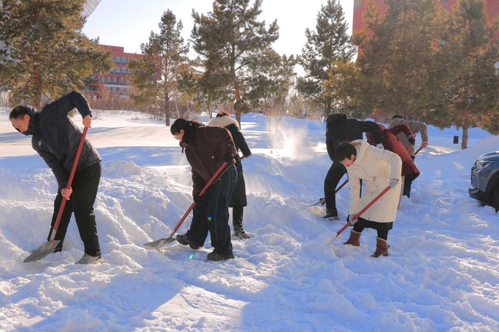 近日,呼伦贝尔地区遭遇强降雪天气,东山校区积雪深厚,给师生出行及周边居民交通带来极大不便,也存在一定安全隐患。为了便利师生出行,营造安全的学习生活环境,3月4日下午,人工智能与大数据学院党委组织教职工党员、学生党员及积极分子在东山校区行知楼、东山路等地,开展“清除冰雪,践行初心”主题党日,以实际行动践行党员奉献精神,守护师生及周边群众出行安全,彰显党员先锋模范作用。