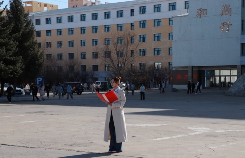 迎着清晨的朝阳,呼伦贝尔学院国防教育实践团国旗护卫队迈着铿锵步伐护送国旗入场。伴随着雄壮的《义勇军进行曲》,五星红旗冉冉升起,全体人员肃立注目,满怀崇敬与庄重。