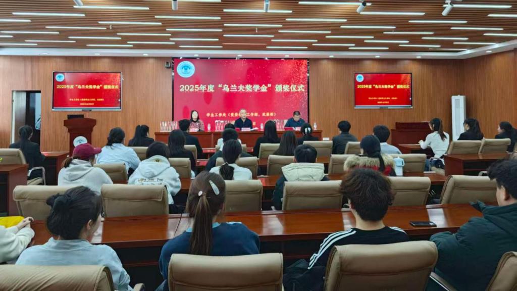为传承践行乌兰夫基金会红色理念,持续深化资助育人成效,厚植优良学风,进一步彰显乌兰夫奖学金的育人价值与示范意义,12月3日下午,我校2025年度乌兰夫奖学金颁奖仪式在崇文楼A501会议室举行。校党委委员、副校长李跃武,学生工作处副处长谢春辉,各二级学院辅导员及学生代表共同参会,仪式由学生工作处处长郝新君主持。