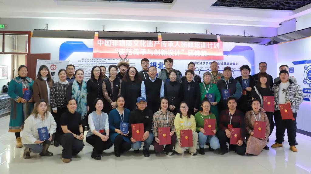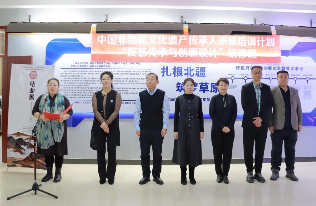 11月24日上午,由内蒙古自治区文化和旅游厅、呼伦贝尔市文化旅游广电局指导,我校主办、教育学院承办的中国非物质文化遗产传承人研修培训计划——2025年“皮艺传承与创新设计”研修班,在学校校史馆二楼展厅举行结业仪式暨成果展。我校党委委员、副校长张桂芝,呼伦贝尔市文化旅游广电局副局长罗伟、非遗科科长李洁韬,我校科学技术处处长刘欣,教育学院党委书记海江、院长李伟艳,自治区非遗研究基地主任、项目负责人斯日古楞以及项目团队、部分授课教师和来自全区8个盟市的25名学员参加了结业仪式。结业仪式由李伟艳主持。